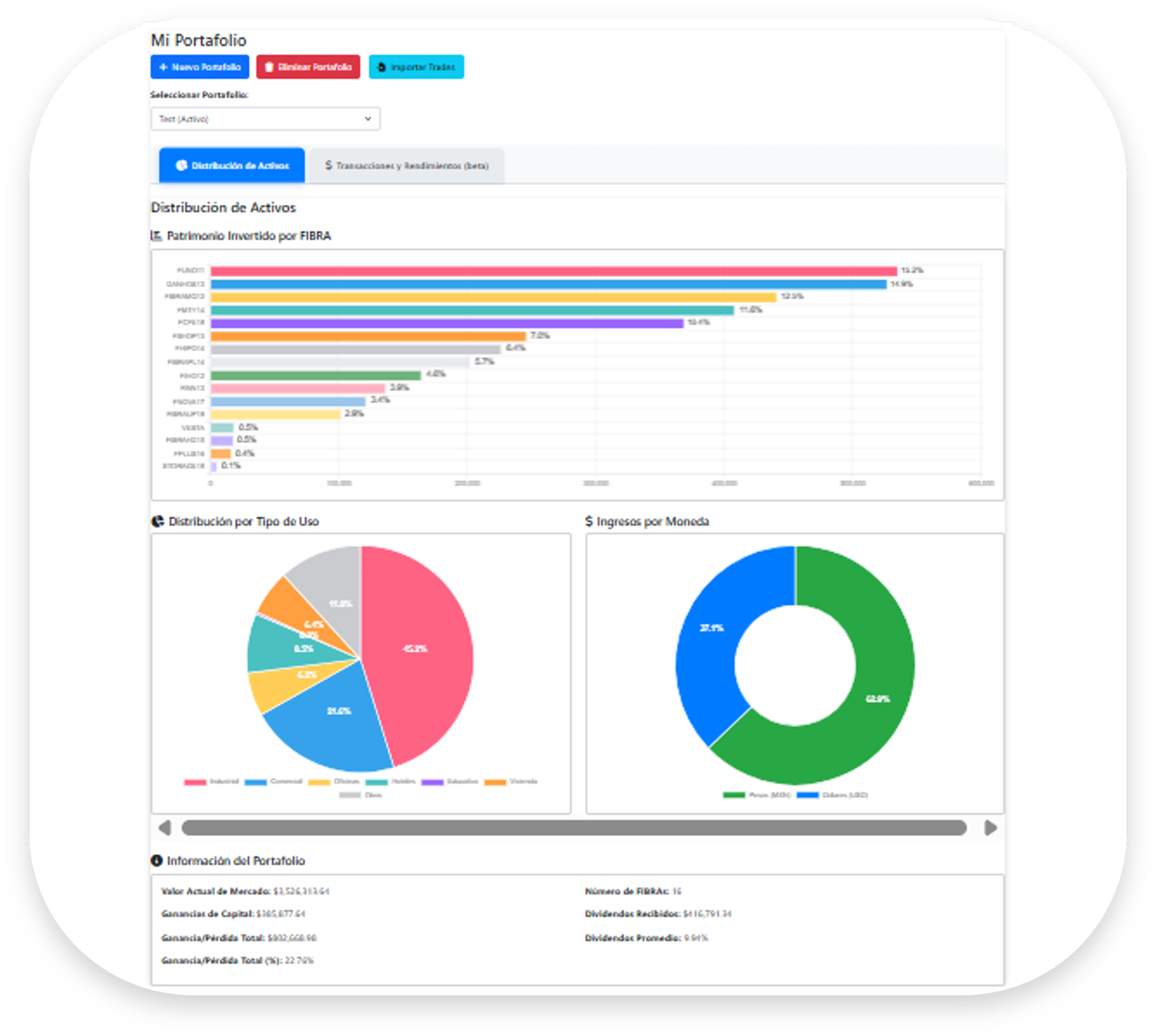 Una vez construido tu portafolio, Fibras.Pro te permite visualizar: